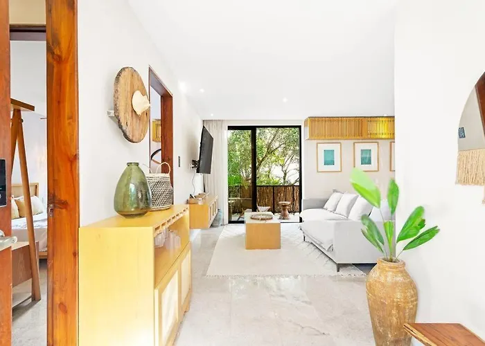 Diese Villa in Tulum im Bezirk La Veleta von Tulum liegt nicht weit entfernt von der Bushaltestelle Vanes foraneas. Die Villa ist eine 54-minütige Fahrt vom Flughafen Playa del Carmen entfernt und in einer Entfernung von circa 10 Autominuten von der Pyramide des positiven Denkens.